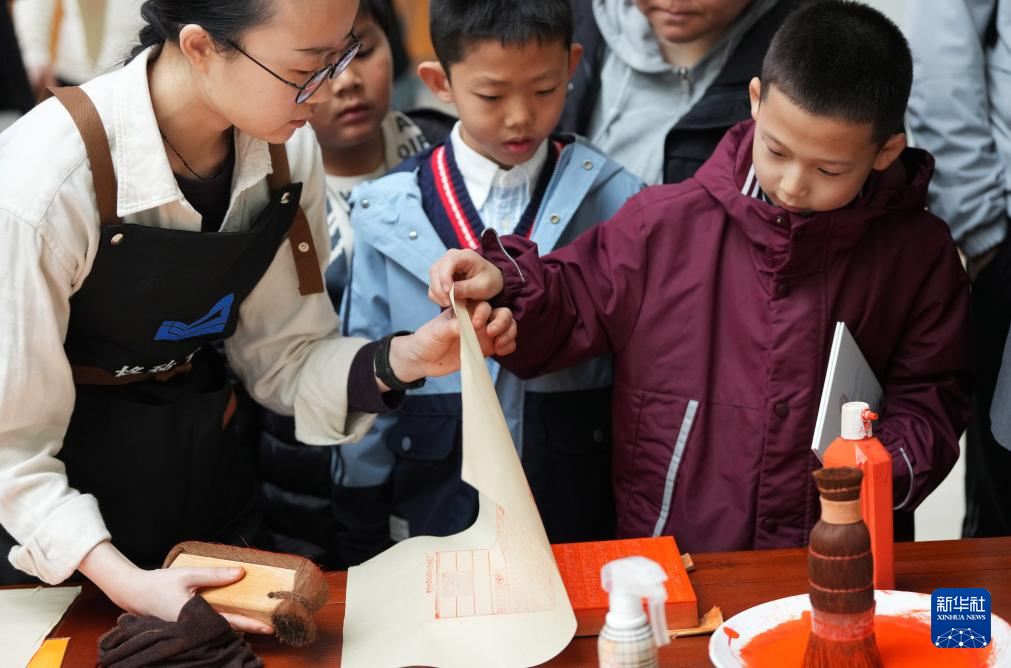 4月19日,读者在辽宁省图书馆现场体验雕版印刷。