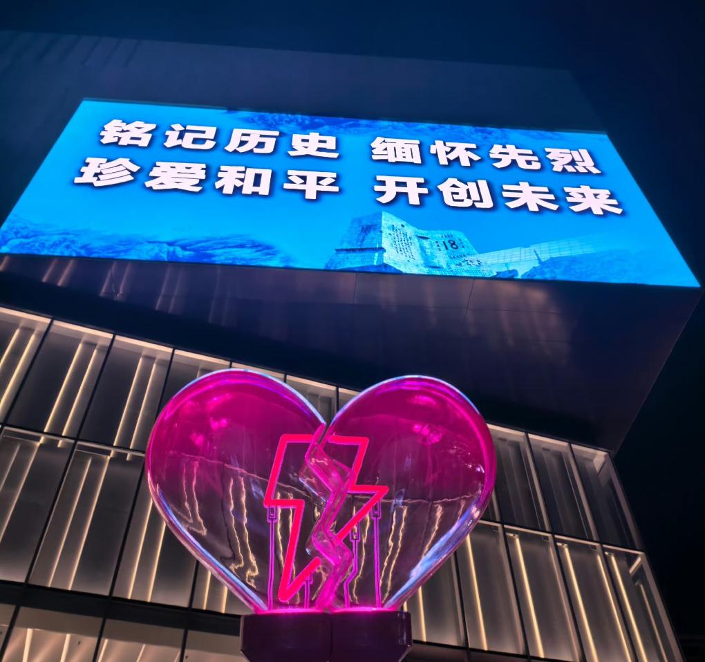 这一刻,沈阳9条路18条街,车辆停驶鸣笛,行人驻足肃立。整座城市没有庆典、没有婚礼,只有对历史的深切追思。118块户外电子屏、1800辆公交车后视屏、上万辆出租车后视屏打出“勿忘国耻 警钟长鸣”等字样。