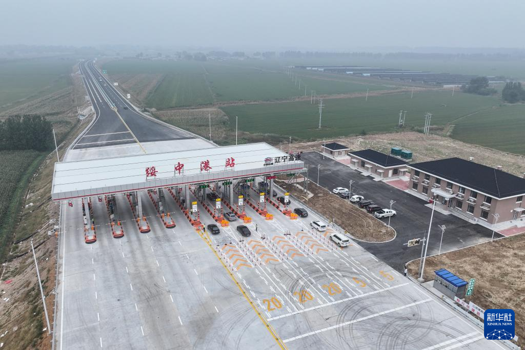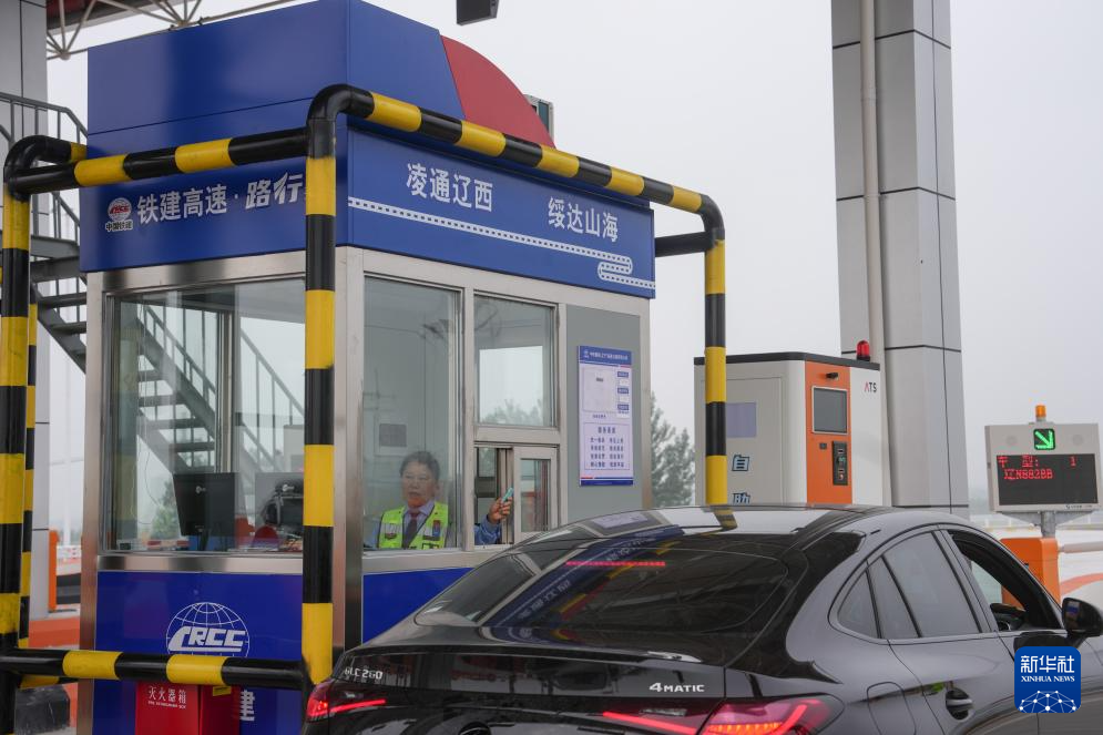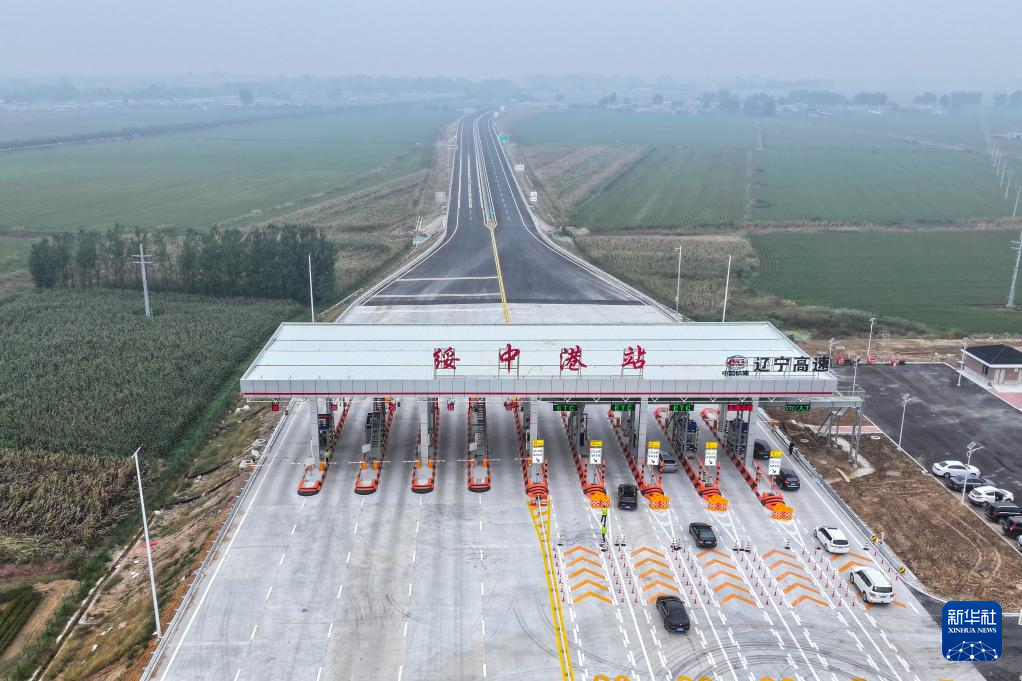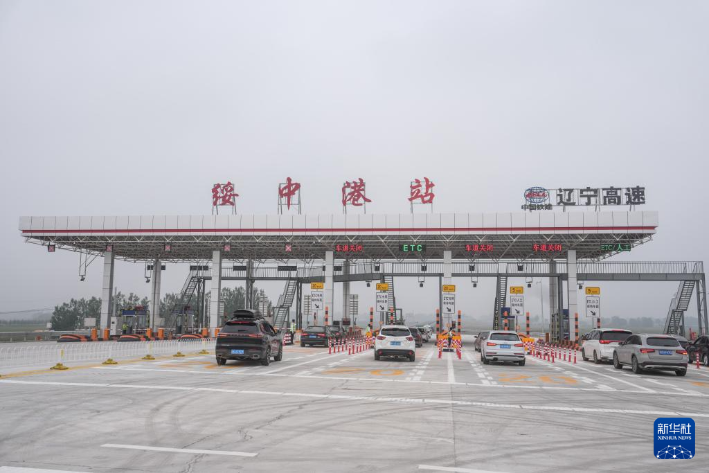 9月27日,车辆从凌绥高速绥中港站收费口进入高速公路(无人机照片)。