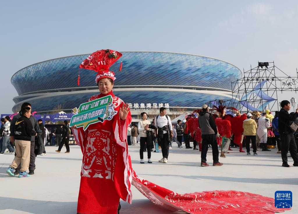 11月15日,大连梭鱼湾足球场外,文体旅嘉年华活动热闹举行。