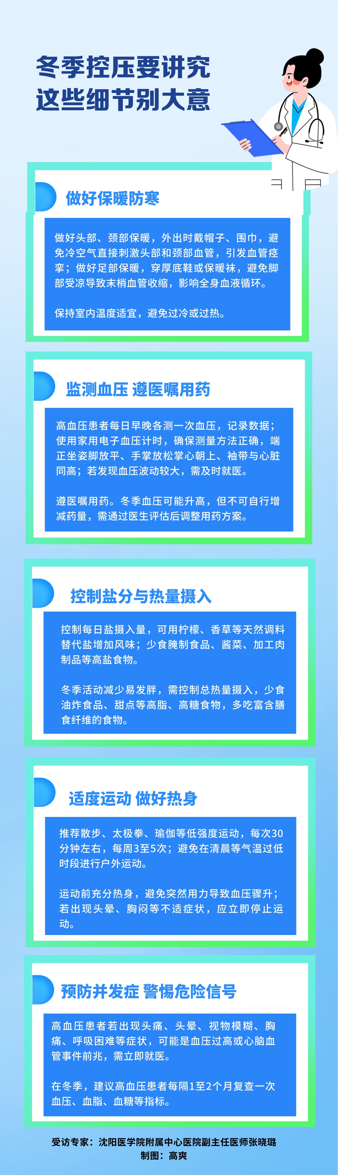冬季低温易导致血管收缩、血压波动,心脑血管疾病发生风险增加,高血压患者尤应注意。让我们通过海报,了解冬季控压知识。