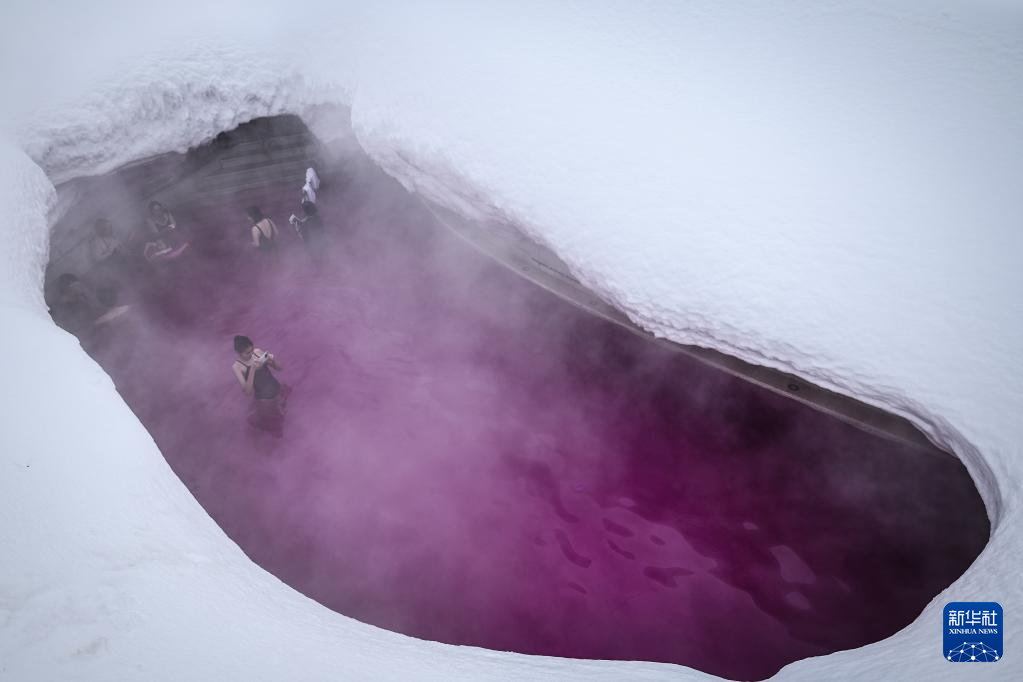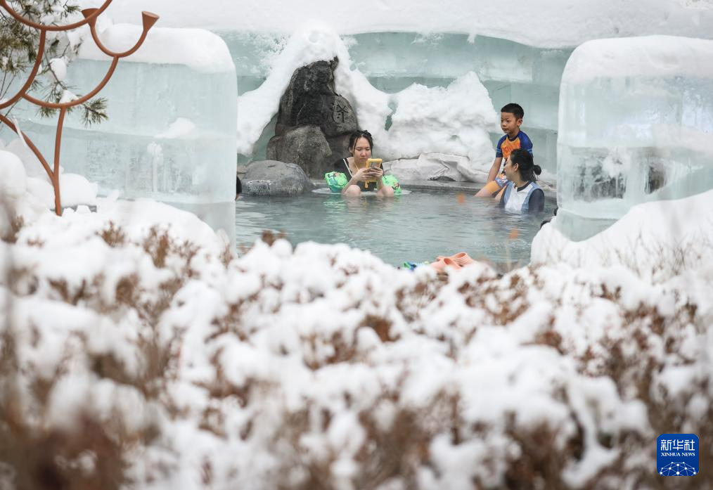 1月9日,游客在沈阳市一家温泉度假酒店体验室外温泉浴。