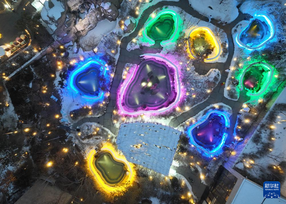 在沈阳市一家温泉酒店,游客在泡温泉(1月9日摄,无人机照片)。