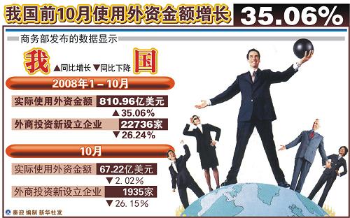 我国前10月使用外资增长35.06%