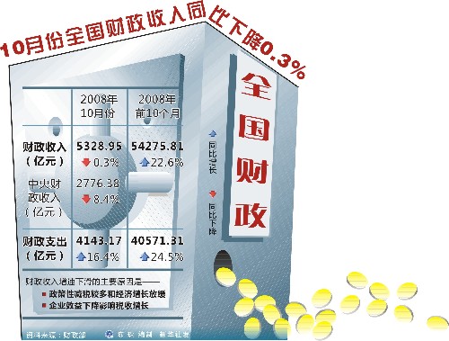 10月份全国财政收入同比降0.3%